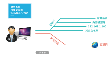 若用户需要访问办公必须的可信网络及服务器,可将其网络地址添加至白名单中,系统便可允许用户访问可信网络。