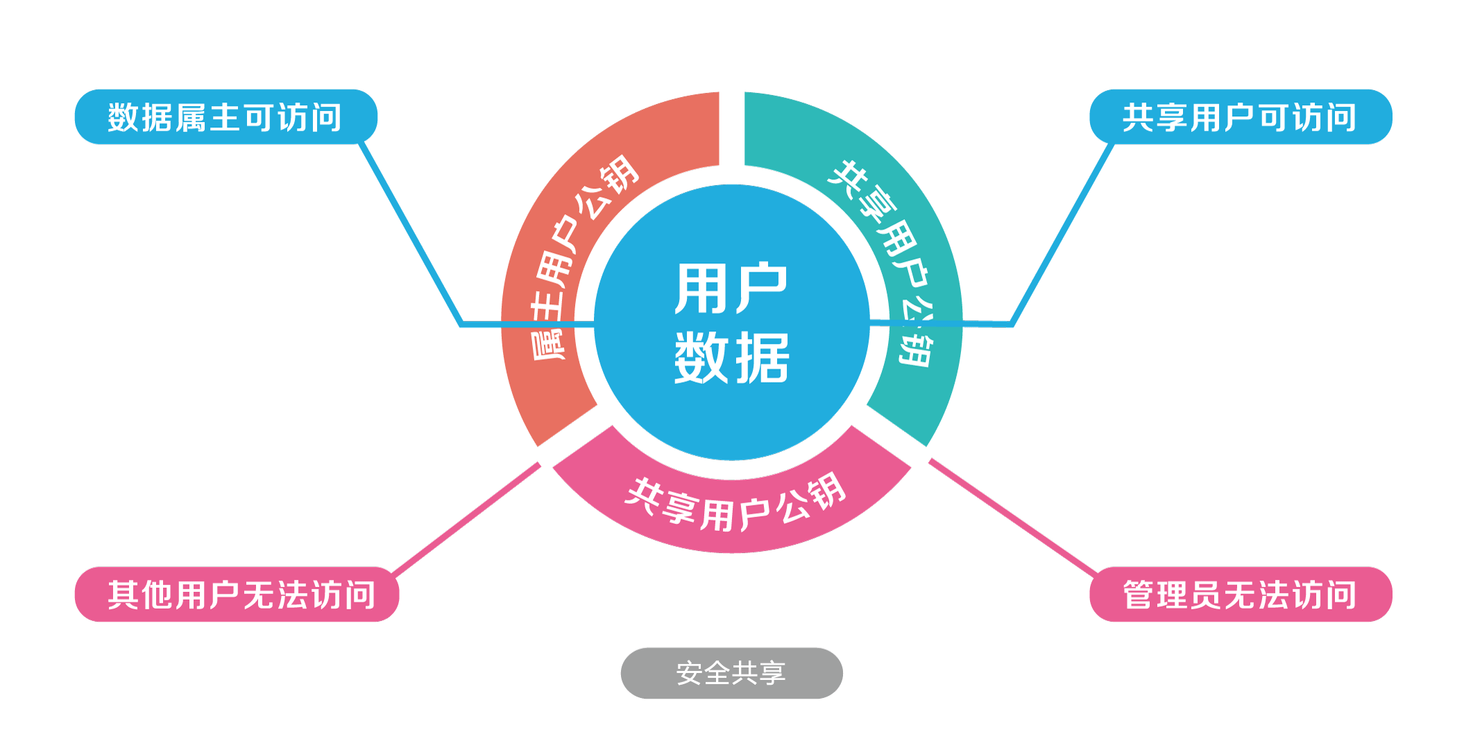 基于先进的数据加密理念,设计研发数据加密安全架构,确保用户数据只能由自己和授权用户访问,任何包括管理员在内的其他用户均无法访问。